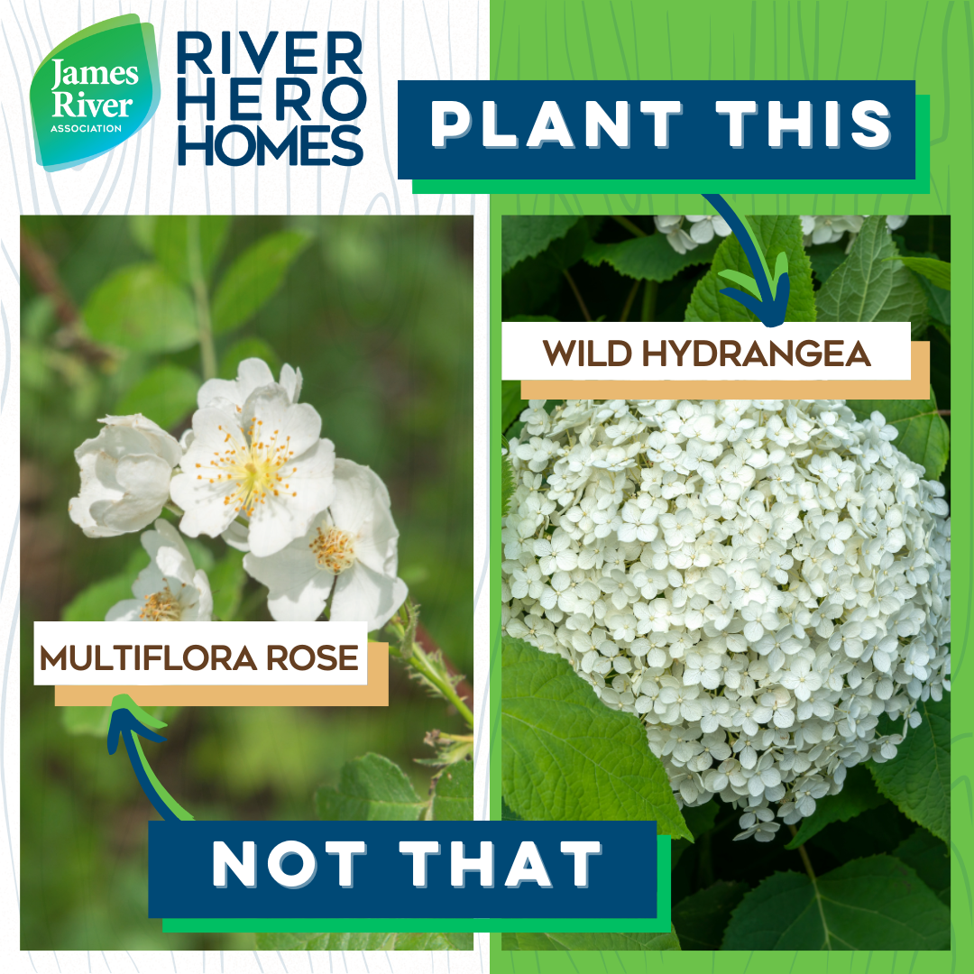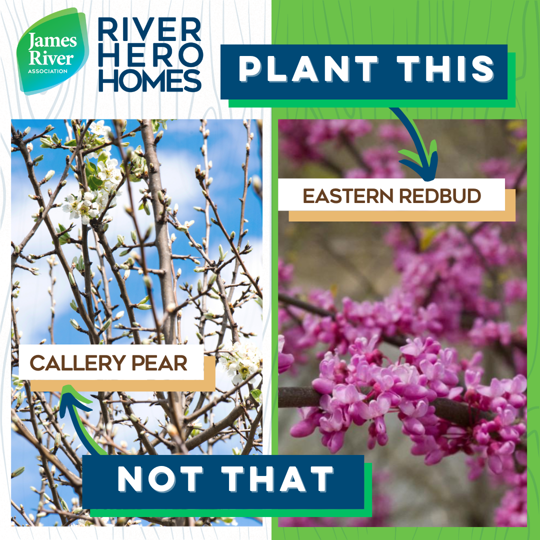 Spring is the perfect time to celebrate native plants. What better way to embrace the season than by enhancing your landscape with these essential species! While non-native and invasive species offer little ecological value and can even cause harm to natural resources, native plant species are essential for supporting healthy, biodiverse ecosystems. Native plants provide food and habitat for wildlife including insects, local and migratory birds, and mammals. Native plants are also adapted to Virginia’s environmental conditions, requiring less water, fertilization, and application of herbicides and pesticides compared to non-natives – saving you resources and reducing the amount of polluted runoff entering our watershed. Below we’ve offered suggestions for native plant alternatives to common non-native and invasive species still commonly found in landscapes across Virginia. For more information on what regionally native plants to incorporate into your landscape this spring, be sure to reference the Digital Atlas of the Virginia Flora. Happy planting!