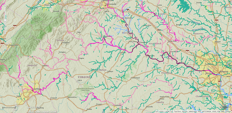 In October of 2024, The Virginia Department of Conservation and Recreation released a new map that identifies potential habitats of native freshwater mussels. As part of a project funded by a grant from The National Fish and Wildlife Foundation to the Chesapeake Bay Foundation, the GIS specialists at the DCR’s NHP created a mussel richness map of hotspots where planting native trees and plants along streams (also called riparian forested buffers, or RFBs) and implementing agricultural best management practices (Ag BMPs) could have the biggest benefit for clean water and mussel habitat. The map also indicates where existing forests that are important for water quality and mussel diversity might be targeted for protection.